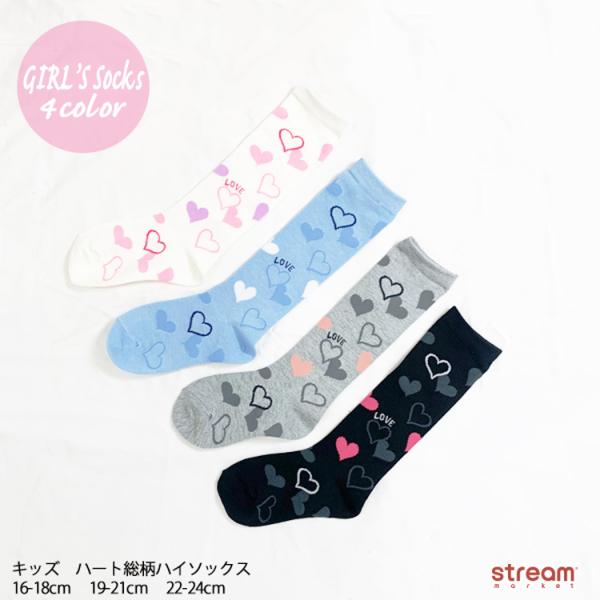 送料無料 ラブリー柄 靴下 ハイソックス 4足セット 2種 ガーリー ソックス 女の子用 長め イチゴ ハート かわいい 保育園 幼稚園 小学校 小学生 子供用 キッズ用 出産祝い お誕生日 プレゼント 贈り物 ブリリアンス子供服 プレゼント ギフトのギフトモール